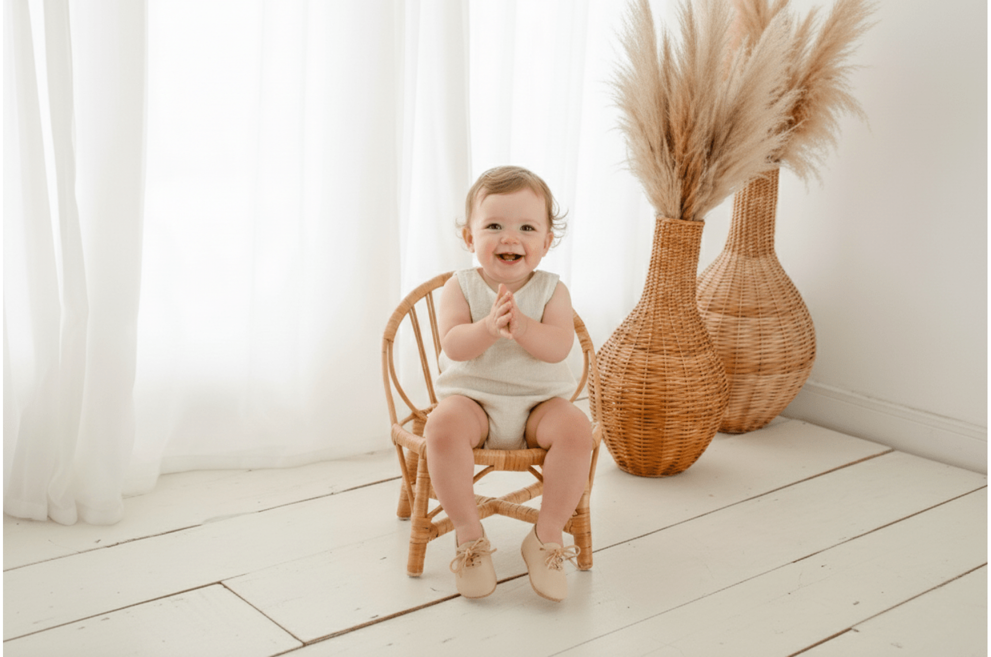 A cadeira de vime é um acessório encantador para as sessões de Newborn e Acompanhamento. Ela possui um acabamento artesanal e rústico que enriquecem a fotografia.