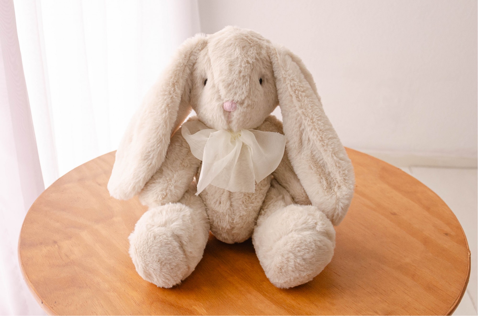 Charmoso e delicado, esse coelhinho de pelúcia  é perfeito para compor cenários encantadores para newborn e acompanhamento