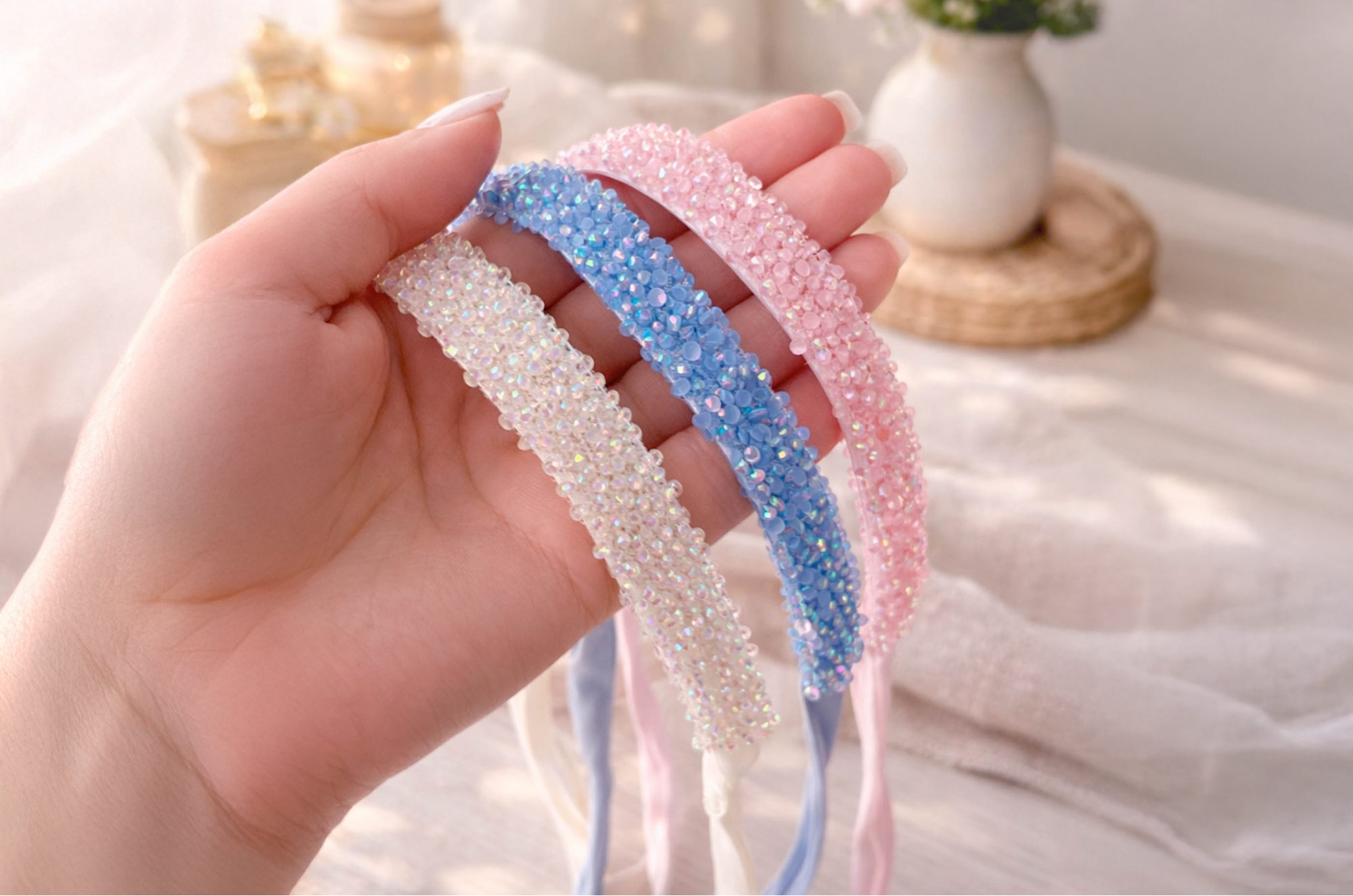Coroa delicada para ensaio infantil confeccionada com aplicação de micro cristais que proporcionam um brilho suave e sofisticado. Leve, flexível e confortável, adapta-se perfeitamente à cabecinha do bebê sem apertar, garantindo segurança durante o ensaio.