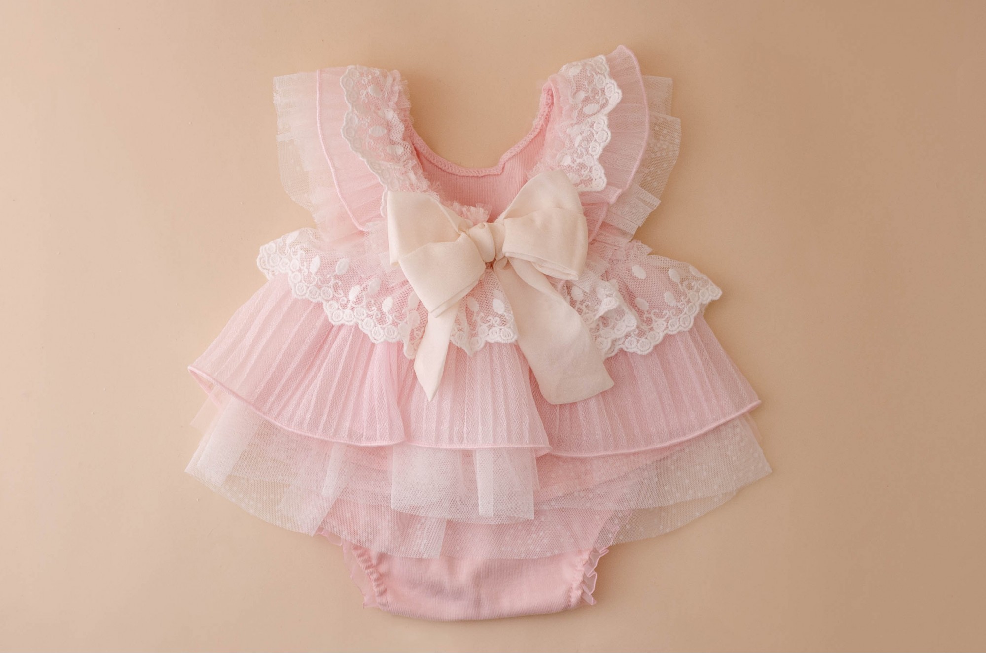 Encantador conjunto de blusa + calcinha para ensaio newborn com modelagem delicada, ideal para compor fotos clássicas e elegantes.