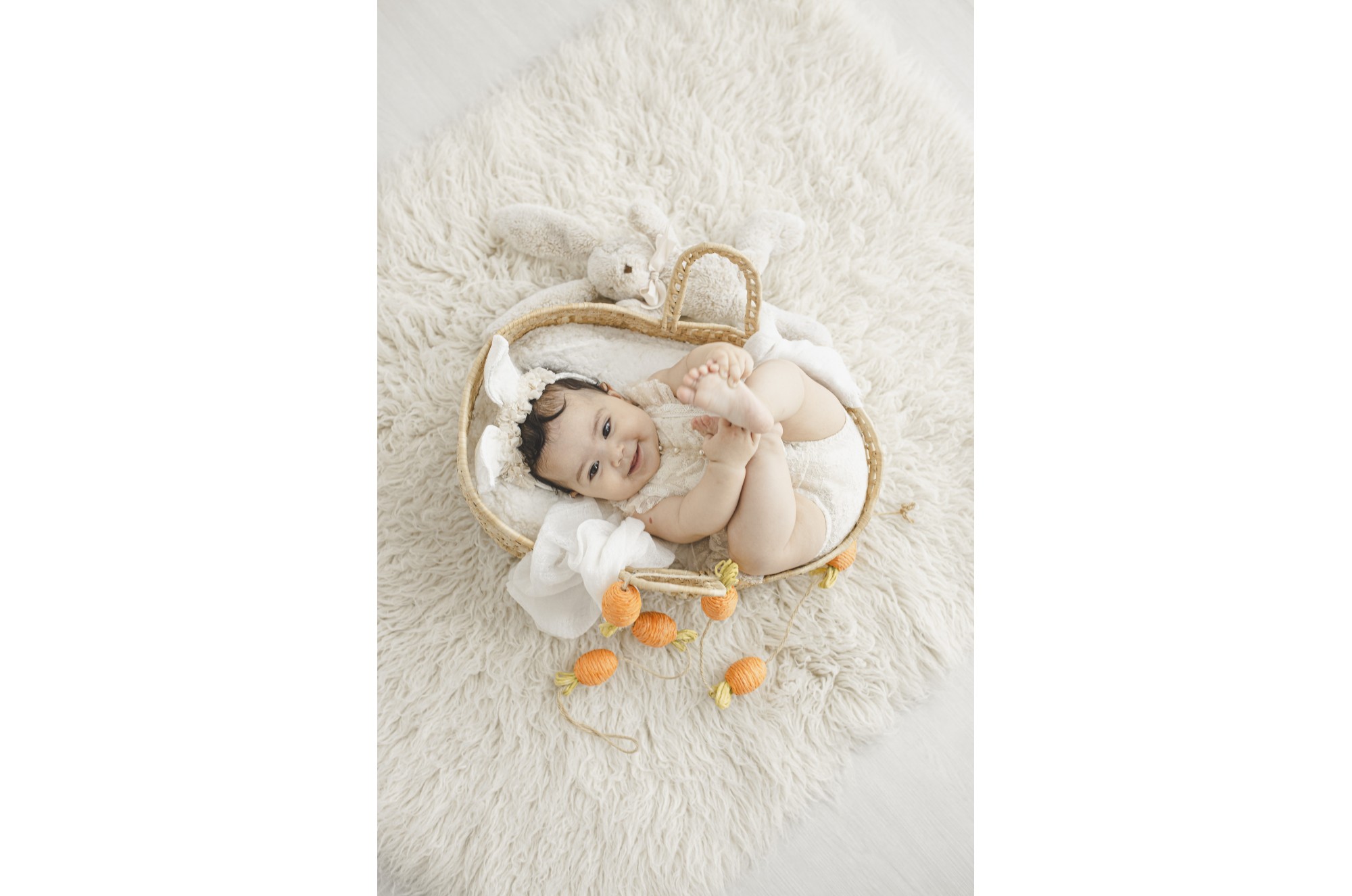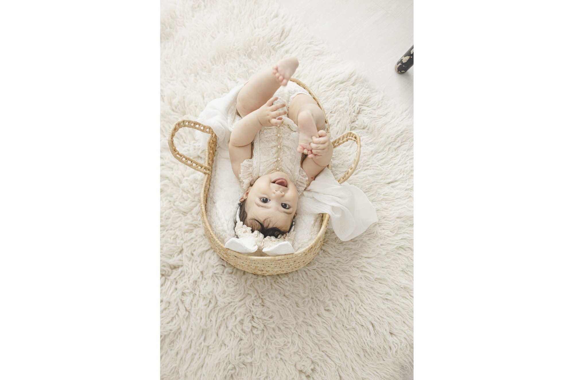 Moisés de palha estilo boho para fotografia.