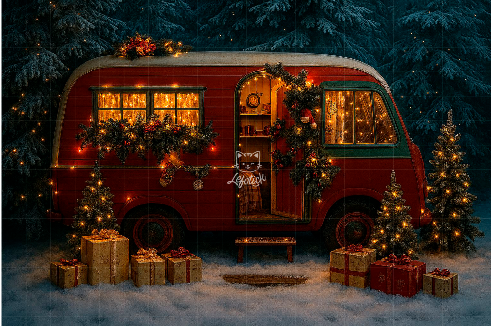 NT25FD02 | Fundo fotográfico em tecido | Natal: ônibus vermelho