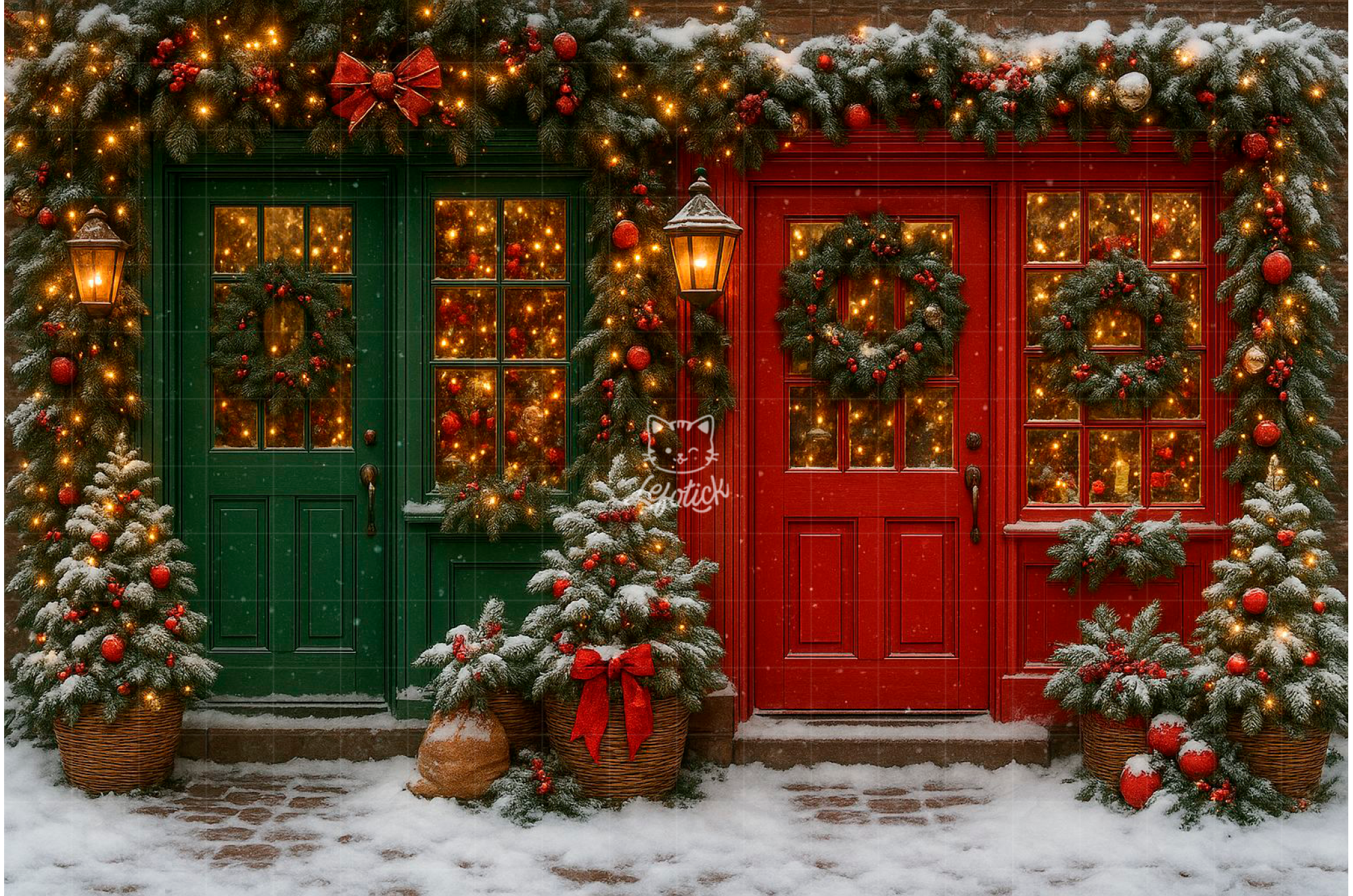NT25FD04 | Fundo fotográfico em tecido | Natal: portas vermelha e verde