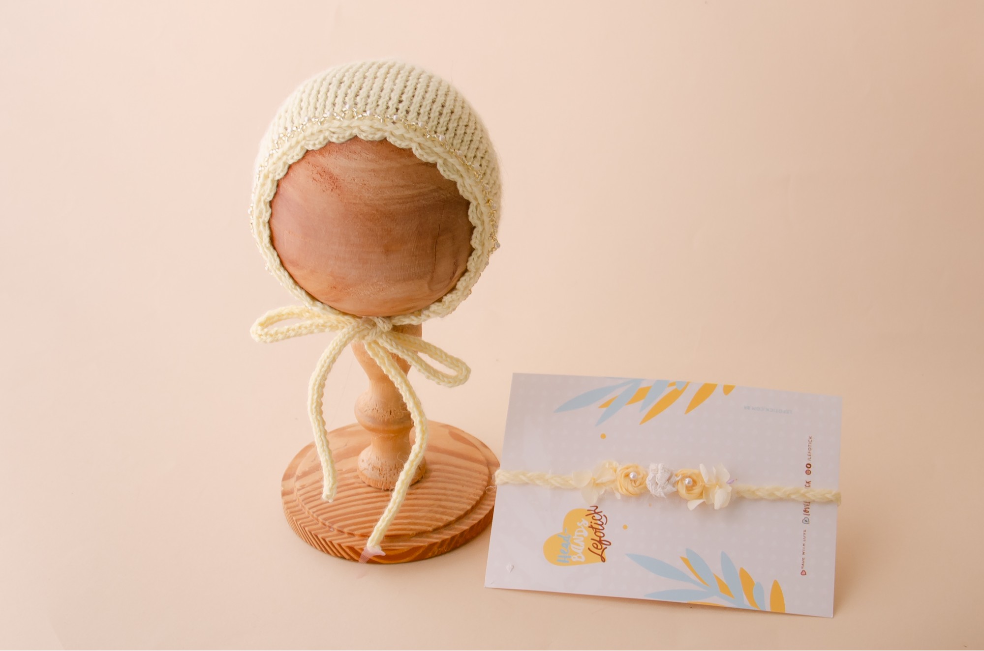 Lindo conjunto de headband e touca feita em lã com textura macia e aconchegante.