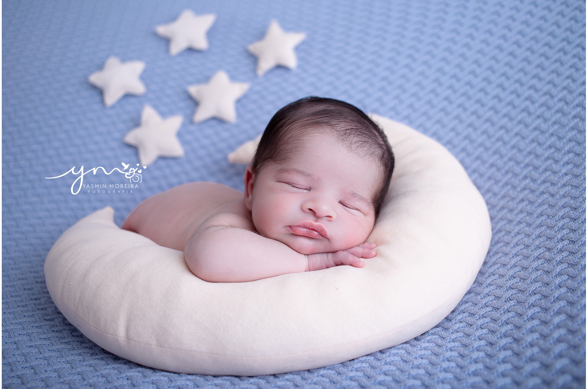 Linda lua perfeita para posicionar os bebês em seus ensaios newborn no puff